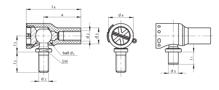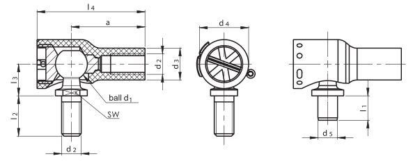 Item | D1 | D2 | L1 | a | D3 | d4 | d5 H11 | L2 ± 0,3 | L3 ± 0,3 | L4 | SW H14 | Peso (G) (Formulário C) |