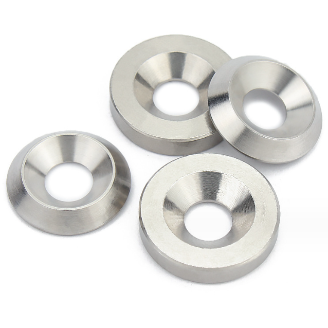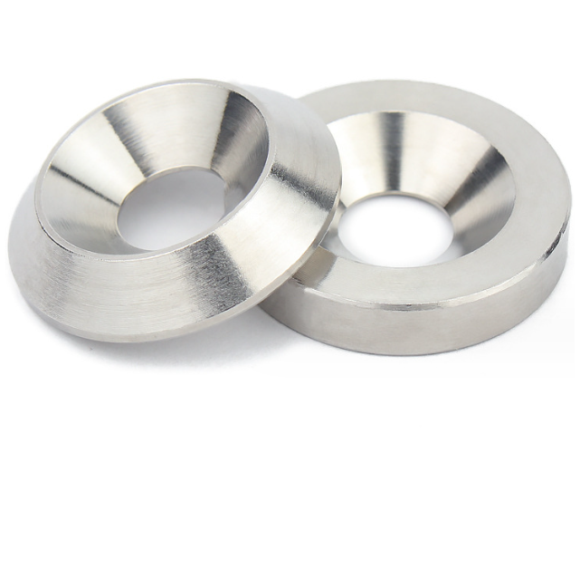 Arruelas escareadas especiais com diferentes materiais ou tratamento de superfície são feitas conforme solicitação do cliente para atender a diferentes aplicações.