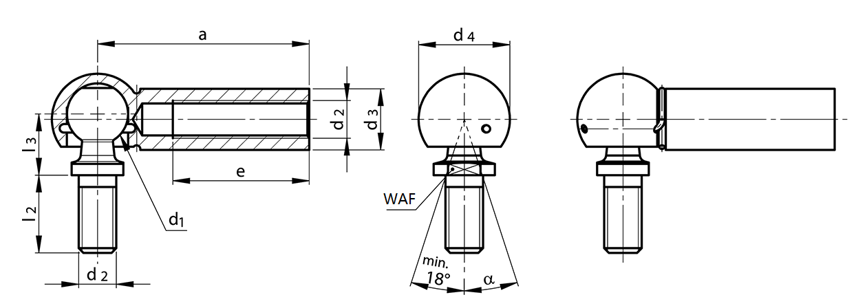 Item | d1 h9 | d2 | a ±0,3 | d3 ±0.5 | d4 ±0,5 | e min | l2 ±0,3 | l3 ±0,3 | WAF | a | Peso (kg/1000 unidades) |